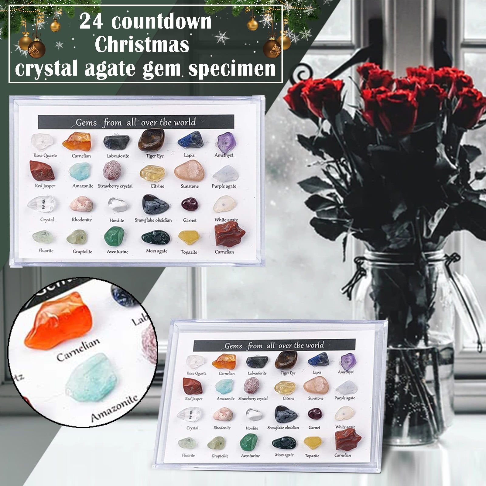 Yotyukeb Original Stone Storage Gift Box Natural Crystal Agate Stone 24 Kinds Of Ore Samples Christmas Countdown Original Stone Walmart Com