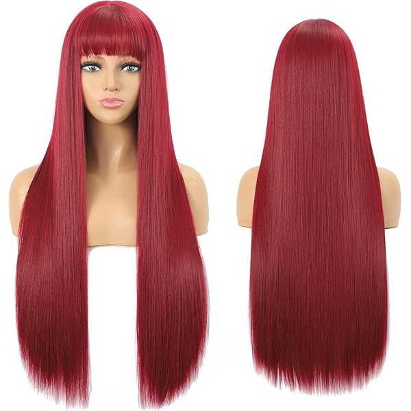 Sylhair Red Wig Long Wig With Fringe 75 Cm Straight Long Red Wig With Fringes Synthetic Hair Wigs For Women 30 Inch Burgundy Wig With Bangs Synthetic Hair Long Straight Red Wigs